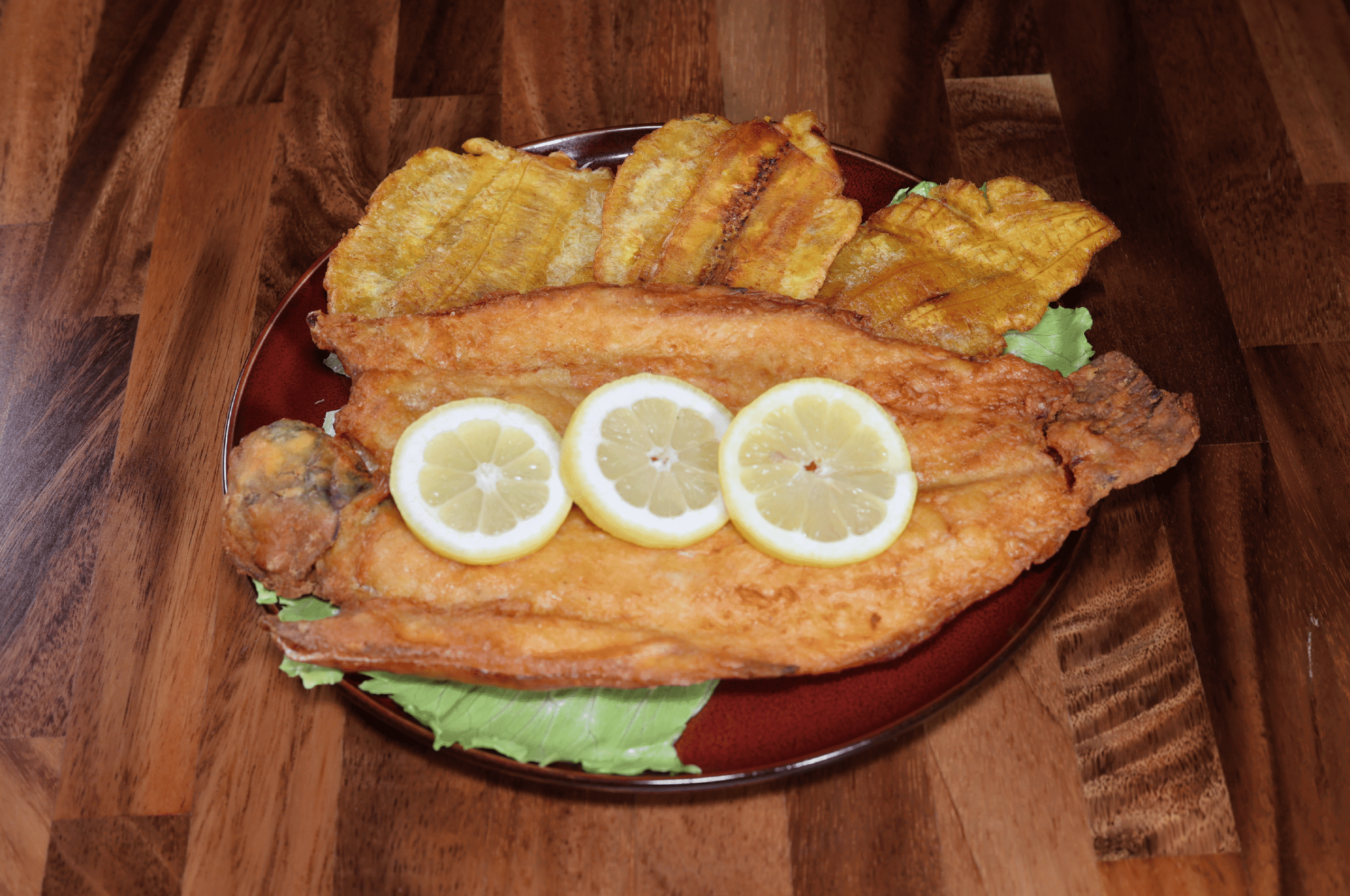 Served with fried green plantain, creole potatoes & salad